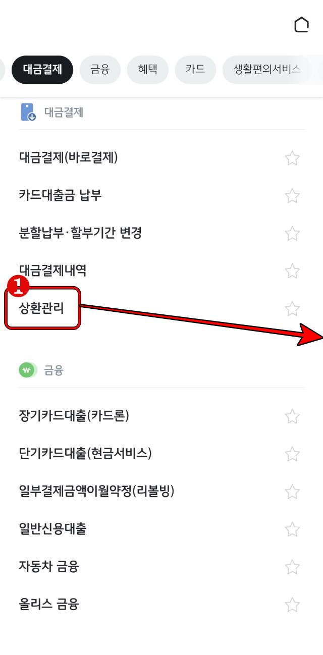 신용카드 결제일 변경 메뉴는