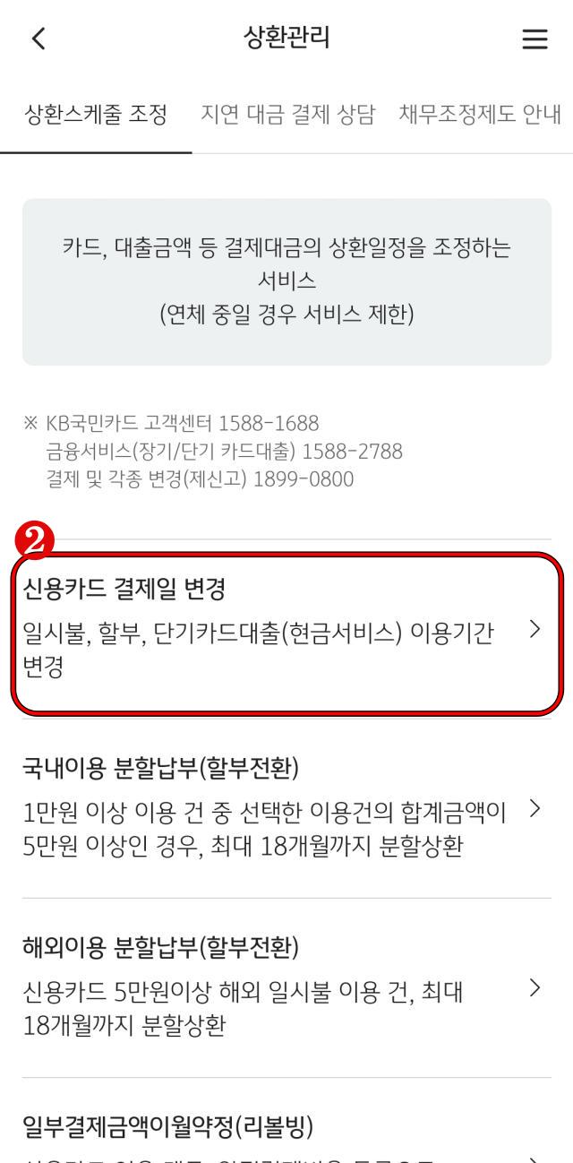 ②신용카드 결제일 변경이