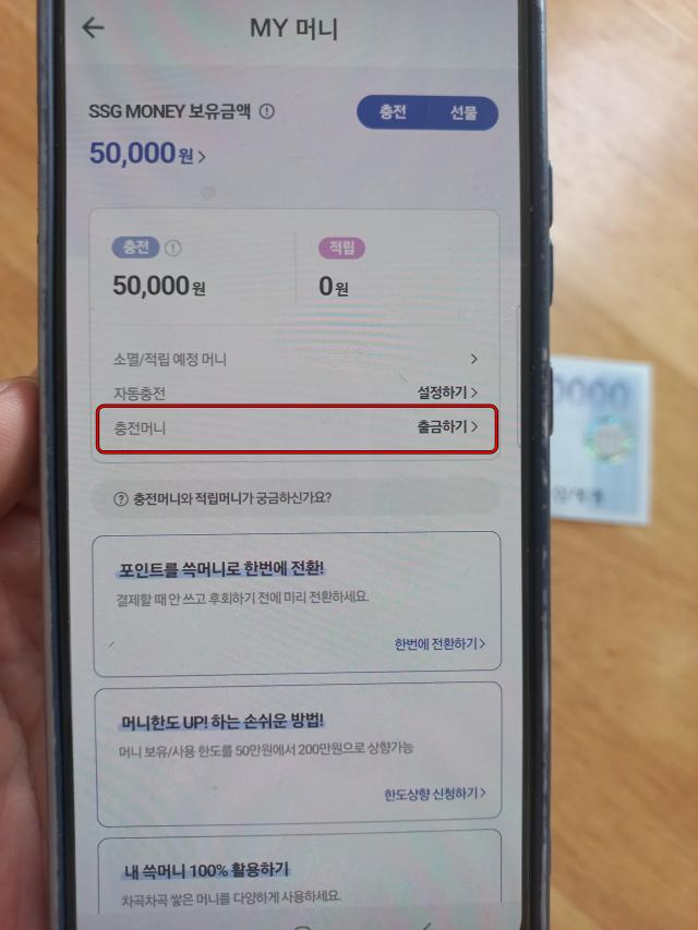 4. 쓱머니 현금 교환하는 법