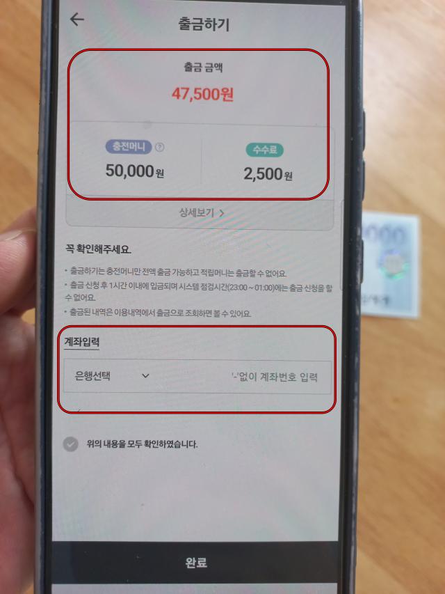 충전머니에서 출금하기를