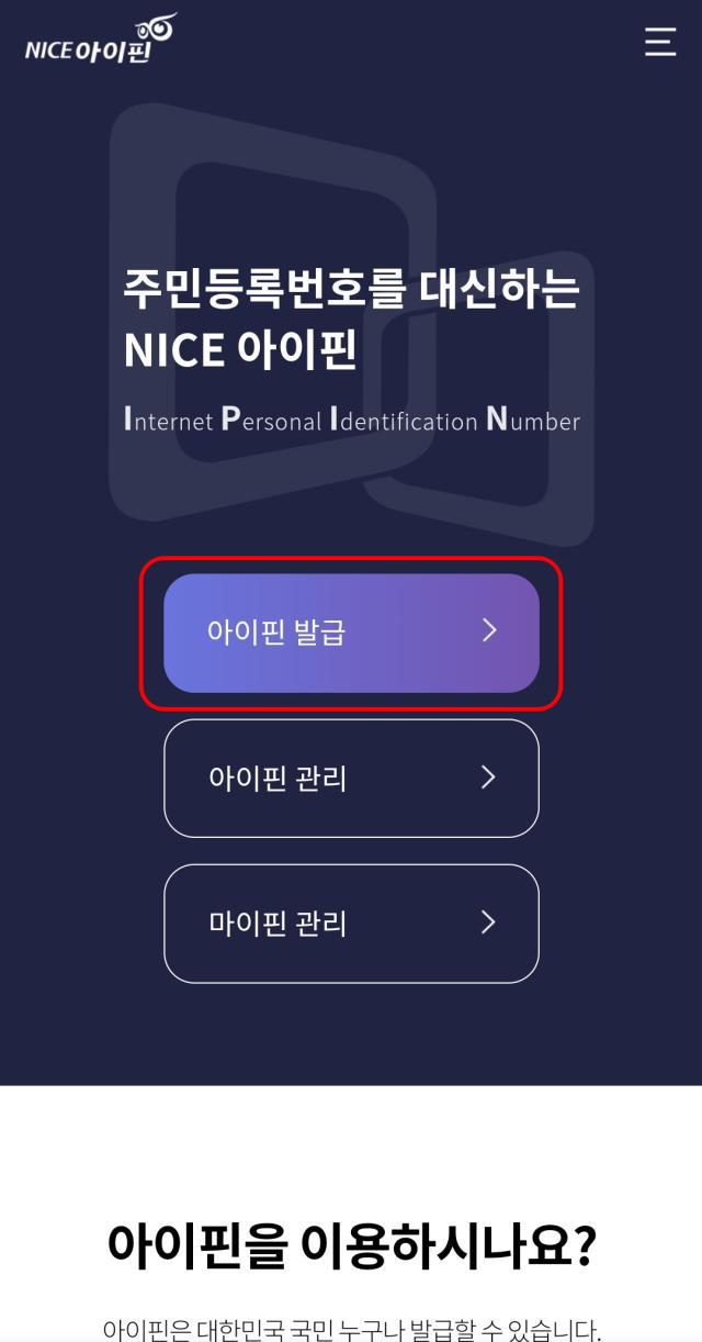 주민등록번호를 대신하는 NICE 아이핀 Internet Personal Identification Number Internet Personal Identification Number