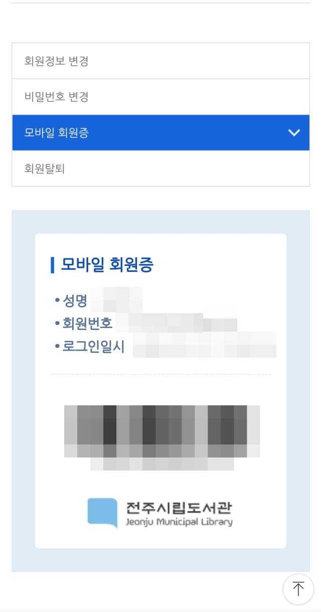 모바일 회원증 선택 후