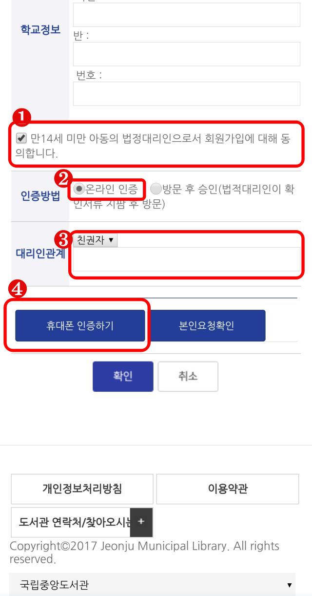 5. 보호자의 휴대폰으로 인증을 합니다.