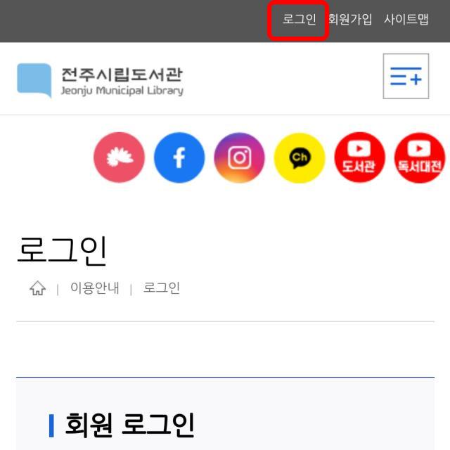 도서관 홈페이지 접속합니다.